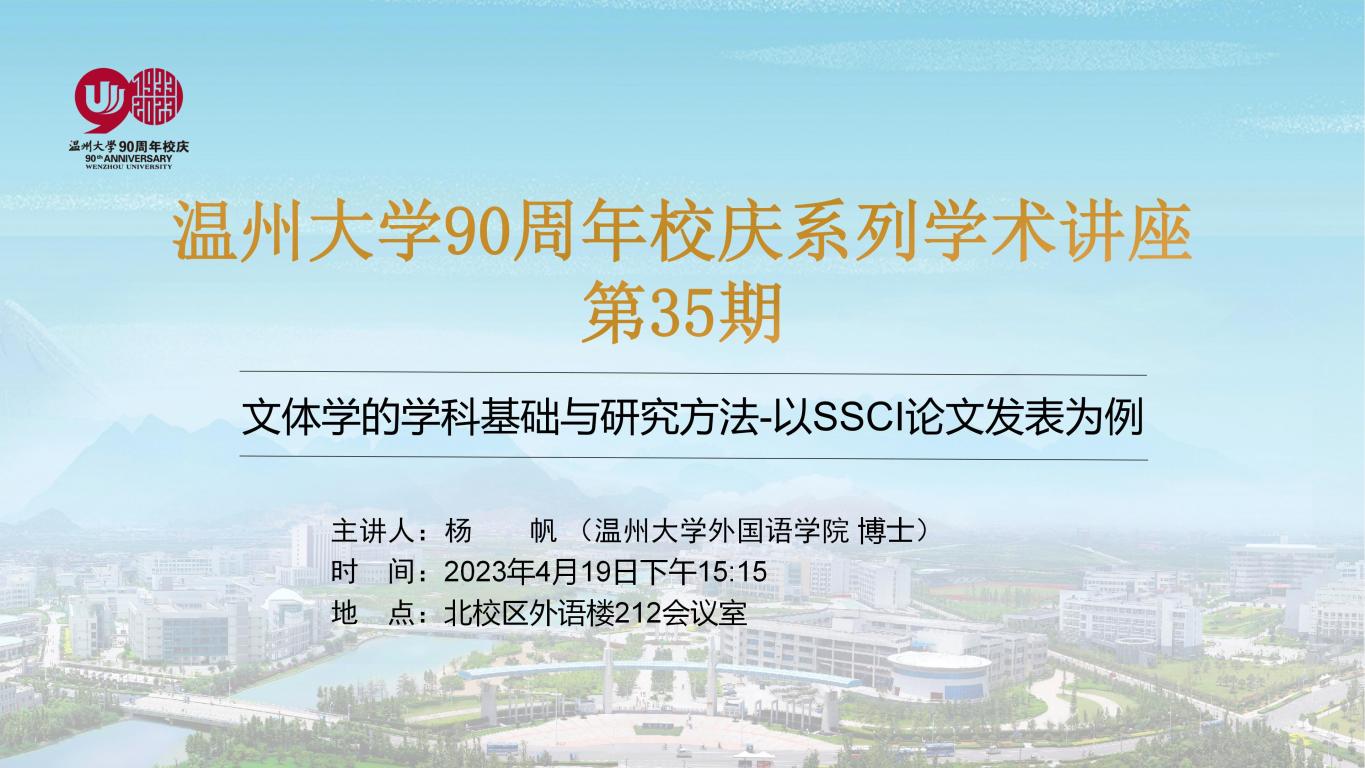 溫州大學90周年校慶系列學術講座(三十五)